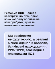 На івенті ми розберемо не суху теорію, а реальні бізнес-сценарії: обороти, банківські надходження, РРО/ПРРО, взаємодія з платниками ПДВ